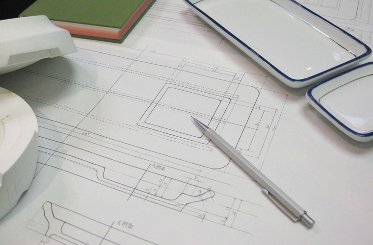 形状から開発するフルオーダーのオリジナル商品開発も承っております。いただいたイメージスケッチや図面などをもとに、経験豊富なインハウスデザイナーが焼きものの特性を見極めOEMをサポート。型代などの初期投資が必要となりますが、理想の形の実現を目指し、職人たちと連携して最適な製造方法を提案します。