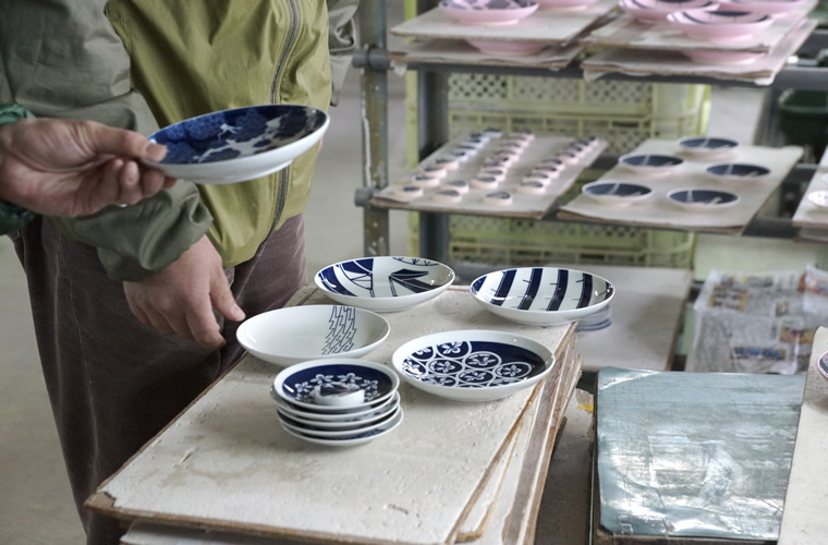 有田焼や波佐見焼の生産では、各工程が分業で行われており、窯元、生地屋、型屋、陶土屋のほか、