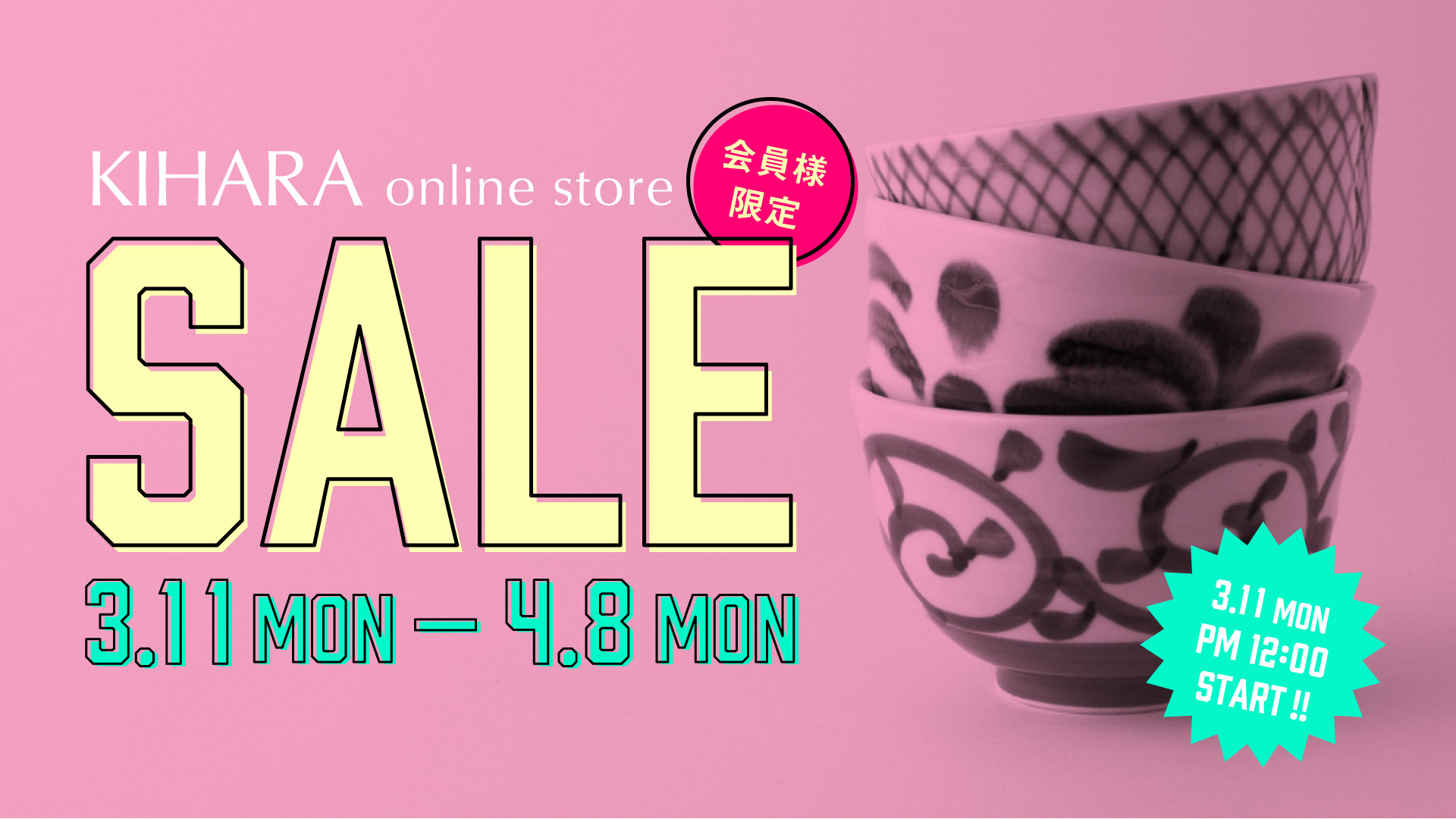 3月11日(月)PM12:00~4月8日(月)まで、KIHARA online storeでは