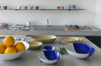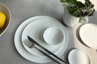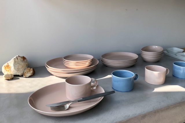 ▲ざらりとした質感が人気の「Planet」プレートと、究極にシンプルで美しいプロポーションを追求した、佐藤可士和デザインの「SHIRO」