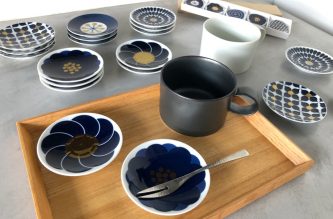 ▲フラワーモチーフが可愛らしい「Botanical」は新アイテムの豆皿が好評。青と白の対比が美しい「HALF」は、専用箱入りで贈り物にもおすすめです。