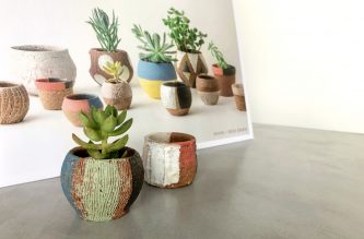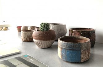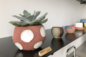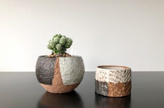 今回は、廃棄処分予定の「KOMON 豆皿」300枚を約1-2mmの粒にまで砕き、陶土に10%ほど混ぜて植木鉢を制作しました。