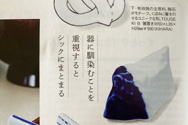 シンプルで器に馴染む箸置きとして「TOUSEKI」も掲載いただいています。