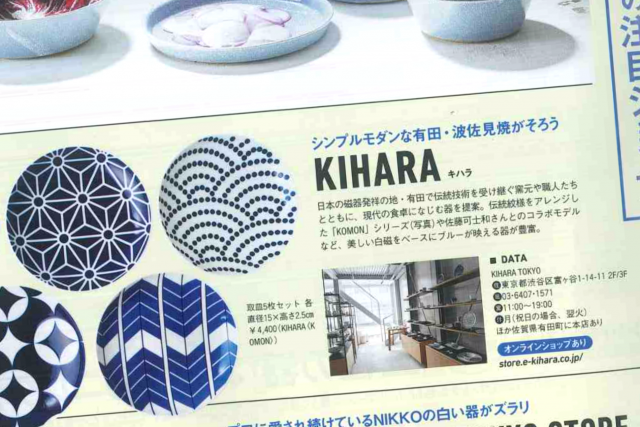「いつものごはんがもっと素敵になる!三種の器を集めよう」特集で、「洗練されていて実用性も◎の注目ショップ」としてKIHARAを取り上げていただいています。