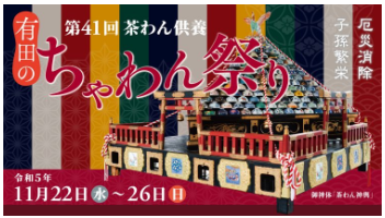 さて、今回はKIHARA ARITA本店があるアリタセラで、11月22日(水)~26日(日)まで開催される「第41回茶わん供養 有田のちゃわん祭り」のお知らせです。