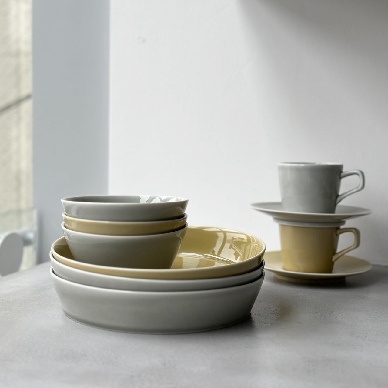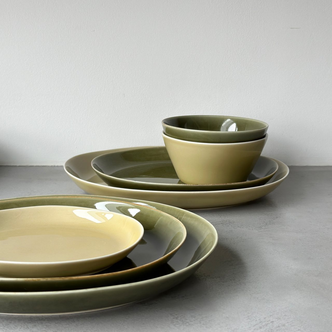 楕円皿3サイズ、楕円鉢2サイズ、深皿、ボウル、スープマグ、カップ&ソーサーの9形状×4色(全36アイテム)から、お好みに合わせてご利用いただけます。