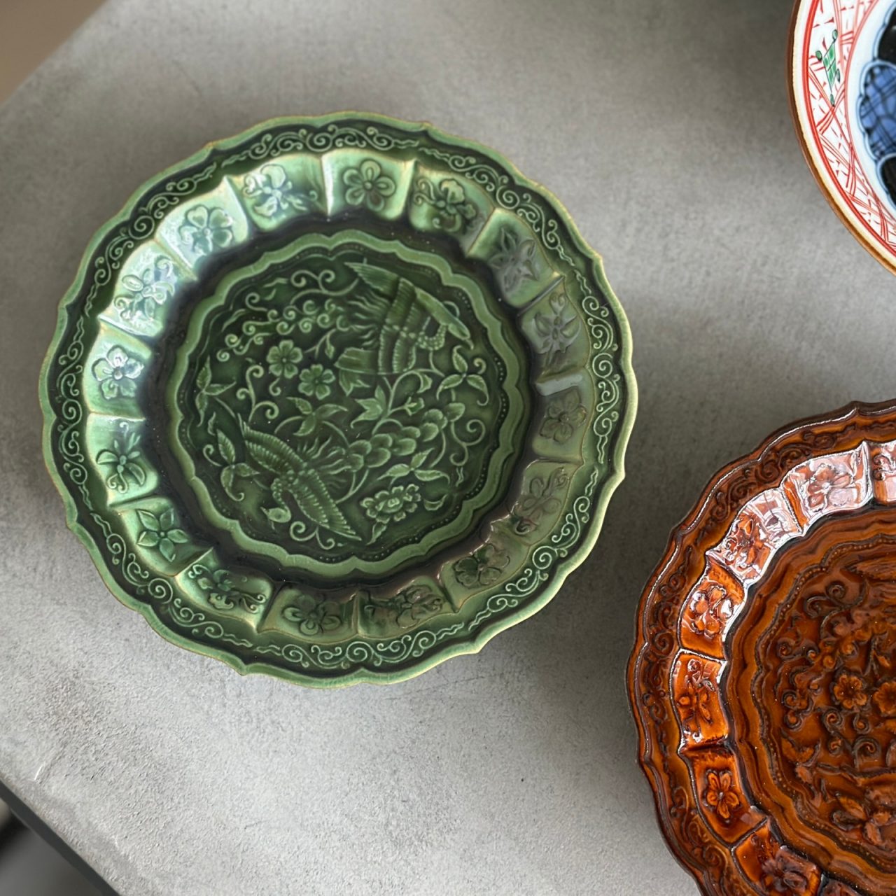 - 福泉窯の花鳥彫5寸皿