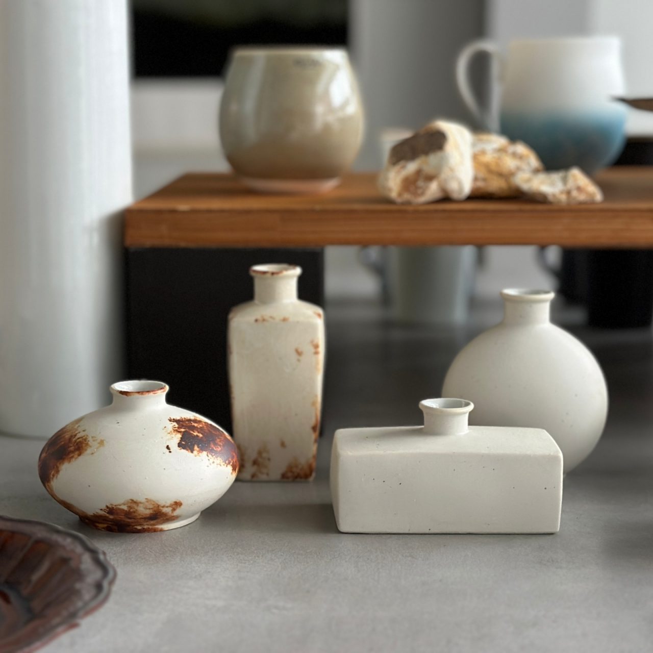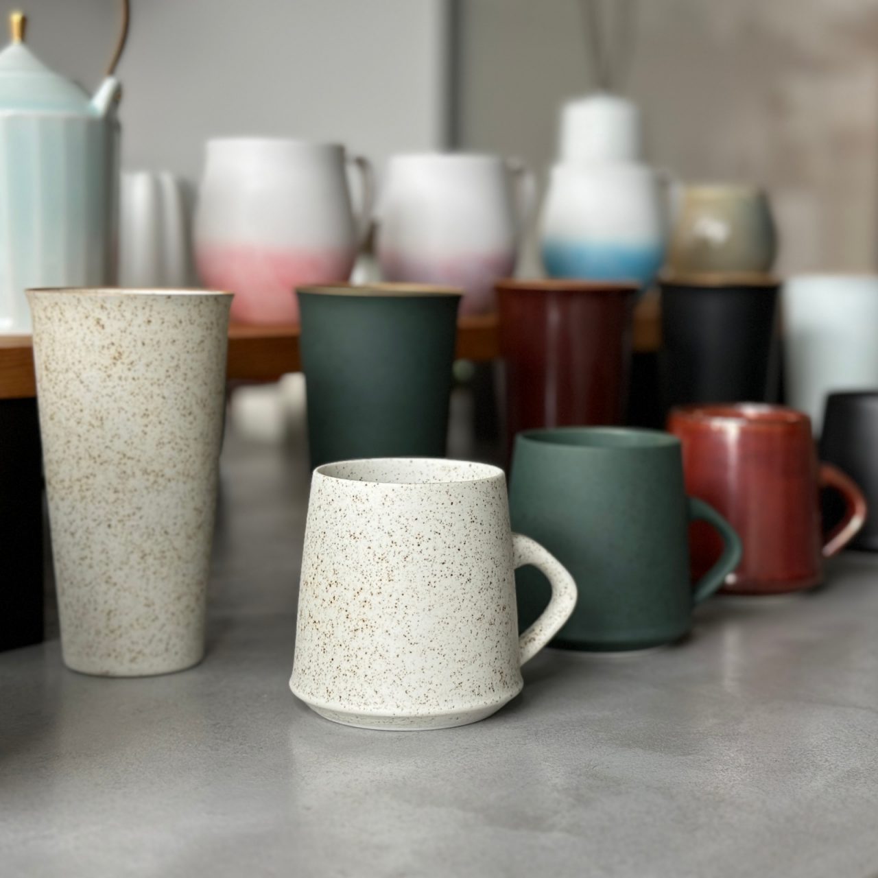 チタン釉のほか「結晶釉シリーズ」や「呉須流しシリーズ」など仕上がりに変化が出やすいアイテムを組み合わせてご案内した会期前半。