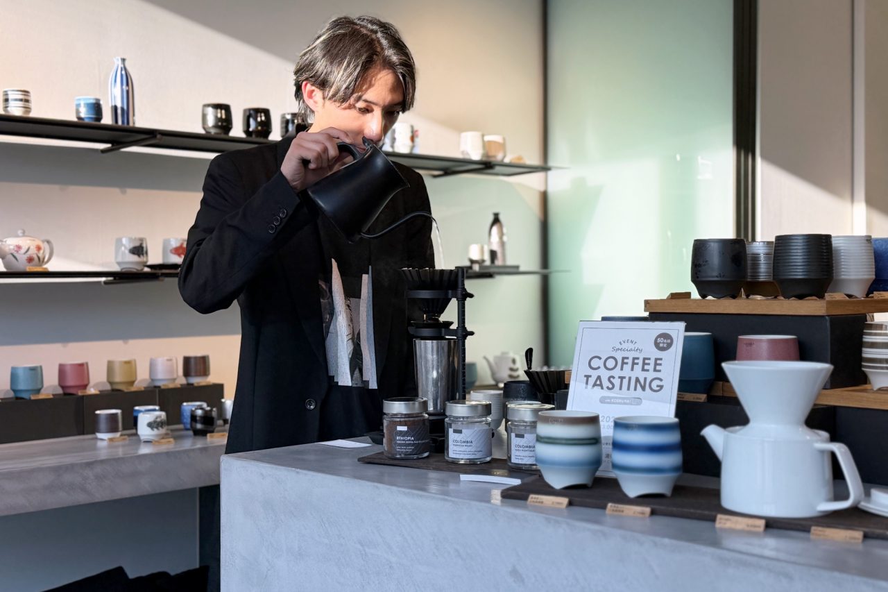 会期中の12月14日(土)には、GLITCH COFFEE & ROASTERS のバリスタ金城さんをお招きして香酒盃を使ったスペシャルティコーヒーの試飲イベントを開催しました。