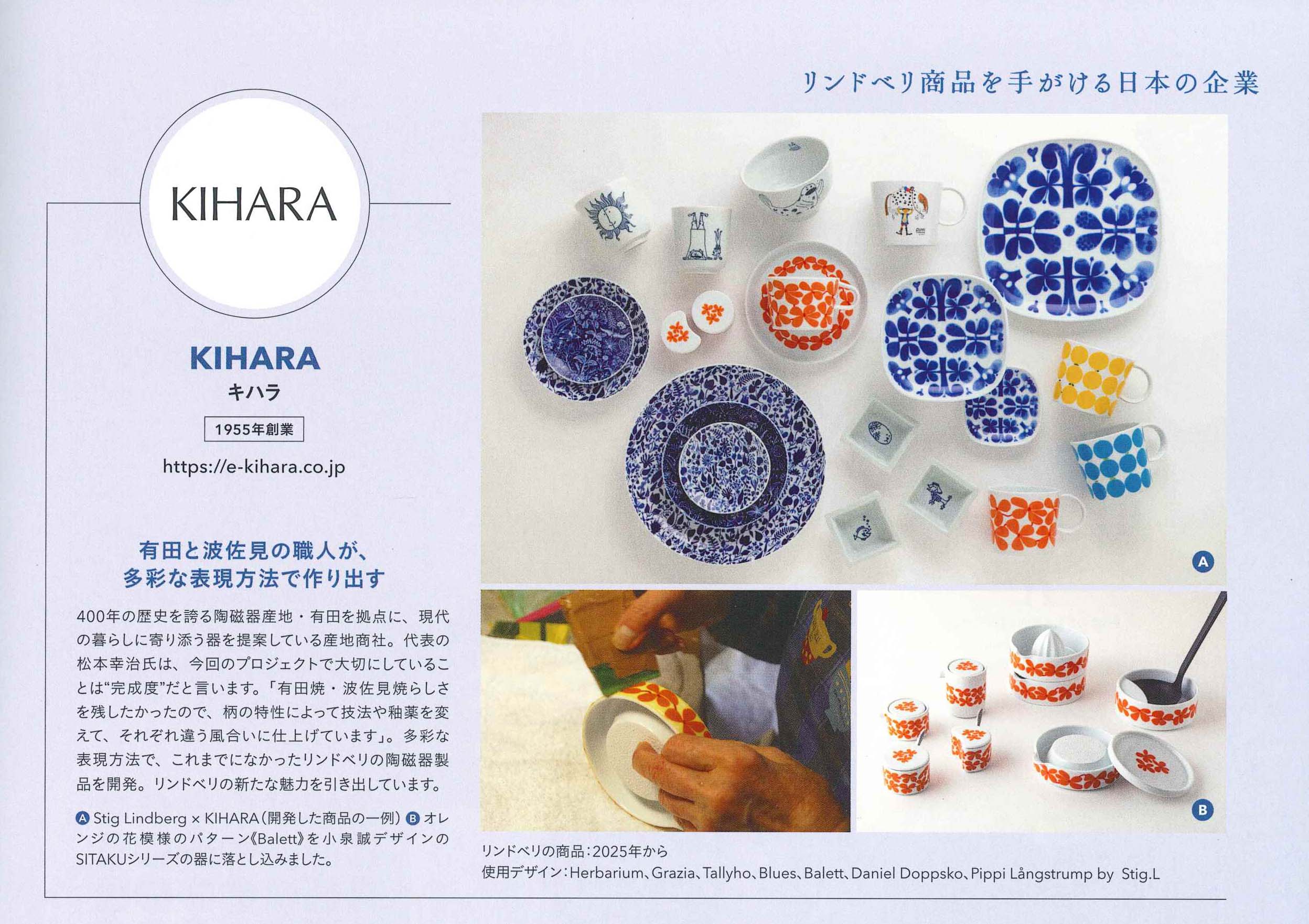 掲載いただいた「Stig Lindberg × KIHARA」は、20世紀の北欧デザインを牽引したデザイナー、スティグ・リンドベリとのライセンス契約のもと、7シリーズのオリジナル商品を開発し販売をしている商品です。