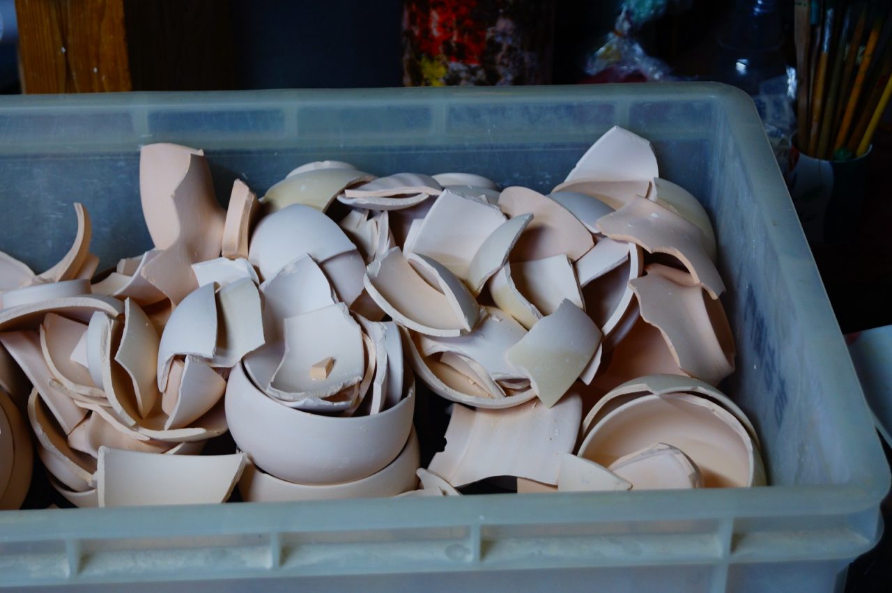 「豊富な種類を扱う業務用食器では、素焼きのストックも多く、棚に積んで保管しているときの重みで割れる”積割れ”なども発生します。年間で結構な量の産業廃棄物を出していることになり、素焼きの有効活用ができないかと考えたのが始まりです」