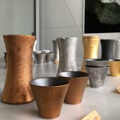 今回のプロジェクトでは、KIHARAの定番「GEN酒器」に泡化粧を施していただきました。